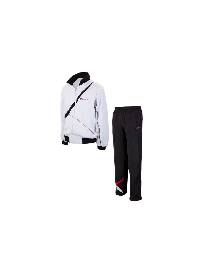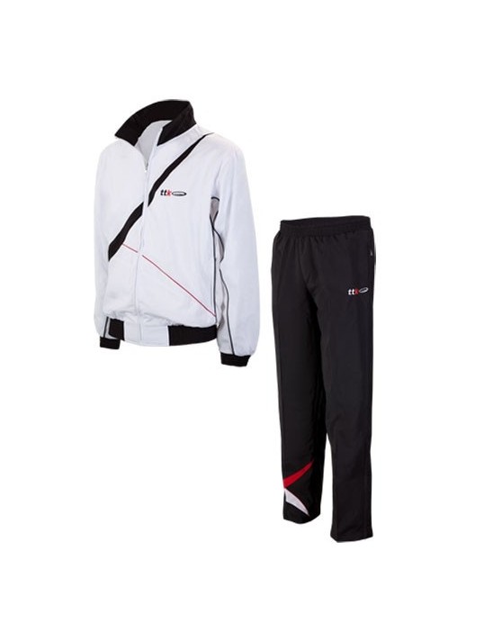 Competition suit in technical fabric. Jacket details: lining, zip closure, retractable pockets and band collar, curled drawstring at the waist. Trouser details: large pockets and final zip to allow an easier fit, drawstring with drawstring and inner lining.