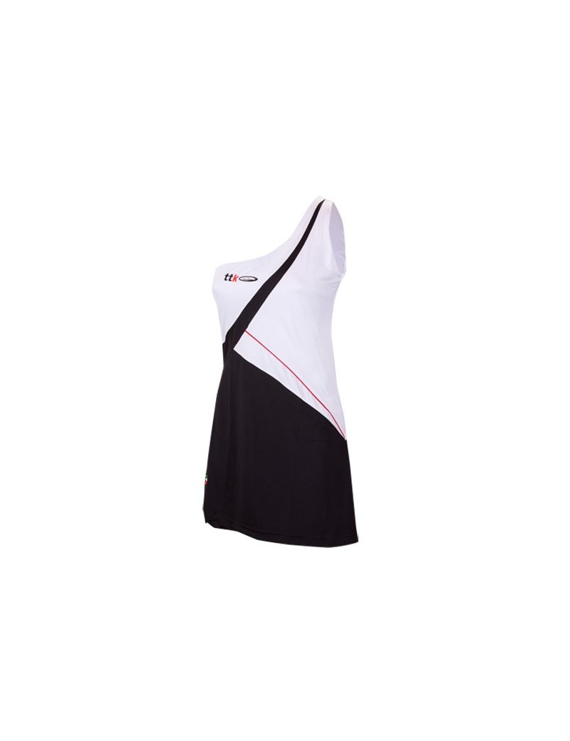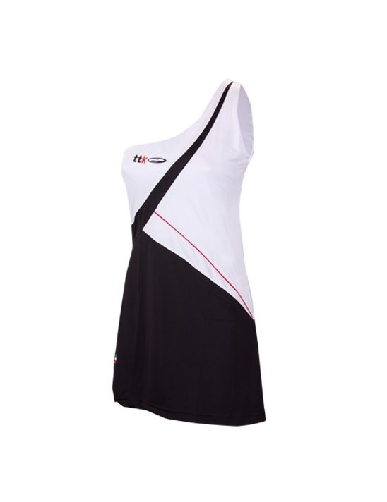 Vestito da tennis della VOLCANO Collection dal taglio sartoriale con monospalla e reggiseno incluso. Il modello è caratterizzato da innumerevoli inserti e piping in contrasto colore per un effetto very glamorous.